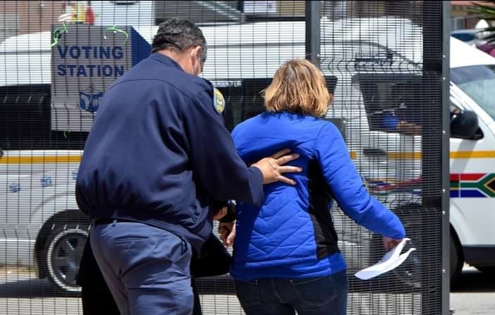 DA communications director Richard Newton said ANC observers at a voting station in Gqeberha had accused her of canvassing for votes minutes before she was taken out of the facility by police.
