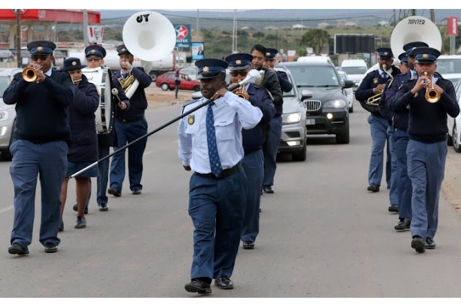 The SAPS brass band arrives at the Babs Madlakane Community Hall in KwaNobuhle as part of Women’s Month celebrations Image Phumlani Saul